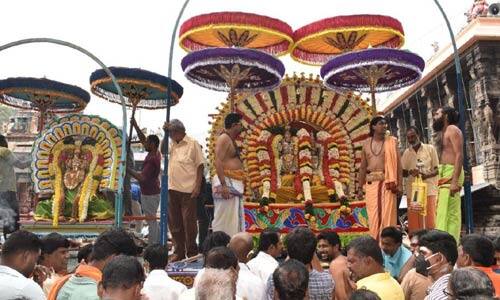 திருவண்ணாமலை அருணாசலேஸ்வரர் கோவிலில், கார்த்திகை தீப திருவிழா கடந்த, 10ல், கொடியேற்றத்துடன் தொடங்கி, இன்று நான்காம் நாள் விழா நடந்தது. இதை முன்னிட்டு, அதிகாலை கோவில் நடை திறக்கப்பட்டு அருணாசலேஸ்வரர், உண்ணாமுலையம்மன் மூலவருக்கு சிறப்பு பூஜை நடந்தது. இதை தொடர்ந்து, காலை உற்சவத்தில், விநாயகர் மற்றும் உண்ணாமுலையம்மன் சமேதரராய் அண்ணாமலையார் சிறப்பு அலங்காரத்தில் எழுந்தருளி, ராஜகோபுரம் முன் பக்தர்களுக்கு அருள் பாலித்தனர். பக்தர்கள் தரிசனம் செய்தனர்.