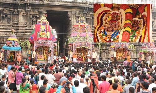 திருவண்ணாமலை : திருவண்ணாமலை, அருணாசலேஸ்வரர் கோவிலில், கார்த்திகை தீப விழா சிறப்பாக நடைபெற்று வருகிறது. கார்த்திகை தீப விழாவின் ஏழாம் நாள் தேரோட்டத்தையொட்டி, தேர் போல அலங்கரிக்கப்பட்ட ரதத்தில் உண்ணாமுலையம்மன் சமேதரராய் அண்ணாமலையார், மற்றும் பராசக்தியம்மன், சண்டிகேஸ்வரர் சிறப்பு அலங்காரத்தில், உள்பிரஹாரத்தில் வலம் வந்து பக்தர்களுக்கு அருள் பாலித்தனர். ஏராளமான பக்தர்கள் தரிசனம் செய்தனர்.