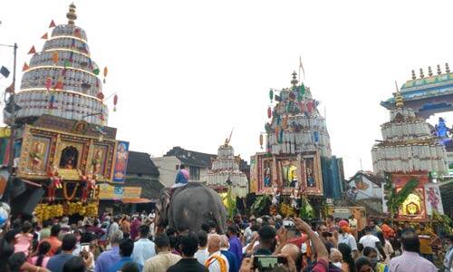 பாலக்காடு: பாலக்காடு கல்பாத்தியில் பிரசித்தி பெற்ற தேர்திருவிழா சங்கம் நேற்று நடந்தது. கேரள மாநிலம் பாலக்காடு கல்பாத்தியில் பிரசித்தி பெற்ற விசாலாட்சி சமேத விஸ்வநாதர் கோவில், தேர்த் திருவிழா கடந்த 14ல் துவங்கியது. முதல் நாள் விழாவில் விசாலாட்சி சமேத விஸ்வநாத சுவாமி, சுப்பிரமணியர் விநாயகர் சுவாமிகள் அலங்கரிக்கப்பட்ட திருத்தேரில் நான்கு வீதிகளிலும் பவனி வந்தனர். இரண்டாவது நாளான நேற்று முன்தினம் மந்தக்கரை மகாகணபதி கோவில் திருத்தேரோட்டவும் நடைபெற்றன.