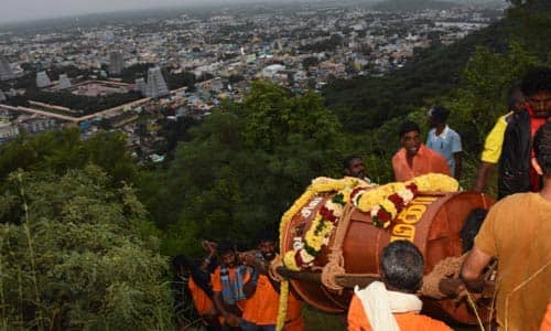 திருவண்ணாமலையில் மலை உச்சிக்கு கொண்டு செல்லப்பட்டது மஹா தீப கொப்பரை