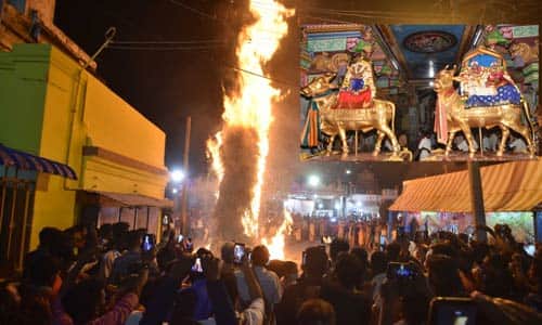 ராமேஸ்வரம் ராமநாதசுவாமி கோயிலில் கார்த்திகை தீப விழா சிறப்பாக நடைபெற்று வருகிறது. கார்த்திகை தீப விழா யொட்டி நேற்று ராமேஸ்வரம் ராமநாதசுவாமி கோயிலில் சொக்கபனை தீபம் ஏற்றினர். கோயிலில் இருந்து தங்க ரிஷப வாகனத்தில் ராமநாதசுவாமி, பர்வதவர்த்தினி அம்மன், பிரியா விடை அம்மன் எழுந்தருளினர். கோயில் மூன்றாம் பிரகாரம் தீப விளக்குகளால் ஜொலித்தது.
