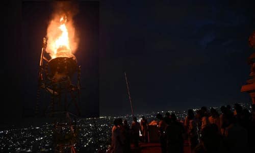 மலைக்கோட்டை உச்சி பிள்ளையார் கோவிலில் மகாதீபம் ஏற்றப்பட்டது