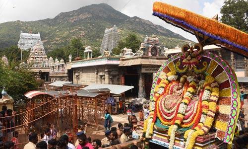திருவண்ணாமலை: கொரோனா கட்டுப்பாட்டால், அருணாசலேஸ்வரர் கிரிவலம் செல்லும் நிகழ்ச்சி ரத்து செய்யப்பட்டதையடுத்து, ஐந்தாம் பிரகாரத்தில் வலம் வந்து பக்தர்களுக்கு அருள்பாலிக்கும் நிகழ்வு நடந்தது.