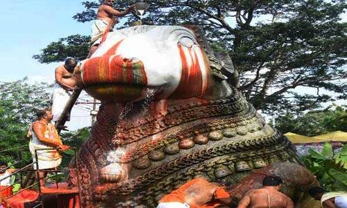 மைசூரு சாமுண்டி மலை நந்தி விக்ரகத்துக்கு மஹாபிஷேகம்