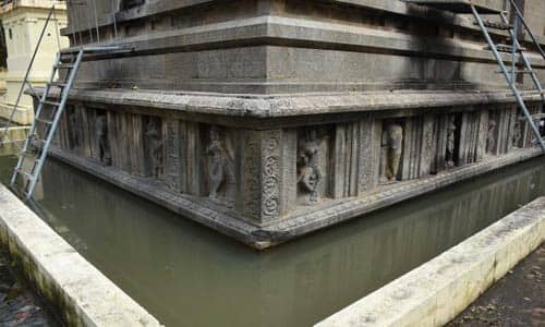 பாகூர் : வரலாற்று சிறப்பு வாய்ந்ததும், 1400 ஆண்டுகள் தொன்மை வாய்ந்ததுமான பாகூர் மூலநாதர் சுவாமி கோவிலில் மழை நீர் வெளியேற வழியின்றி, பல நாட்களாக தேங்கி நிற்பதால், அதன் உறுதித் தன்மை கேள்விக்குறியாகி உள்ளது. பாகூரில் 1,400 ஆண்டுகள் பழமை வாய்ந்த வேதாம்பிகை சமேத மூலநாதர் சுவாமி கோவில் உள்ளது. முதலாம் பராந்தக சோழ மன்னனால் கட்டப்பட்ட இக்கோவில், தற்போது இந்திய தொல்லியல் துறையின் கட்டுப்பாட்டில் உள்ளது.இயற்கை சீற்றங்களாலும், முறையாக பராமரிக்க தவறியதாலும், இக்கோவில் சேதமடைந்து போனது. இதனையடுத்து, இக்கோவிலில் புனமைப்பு பணிகள் மேற்கொள்ளப்பட்டு, கடந்த 2017ம் ஆண்டு கும்பாபிஷேகம் செய்யப்பட்டது.சமதளமாக இருந்த வெளிபிரகாரத்தை, புனரமைப்பு பணியின்போது, 3 அடி ஆழம் பள்ளம் தோண்டி, அதில் செங்கற்கள் பதக்கப்பட்டு தரை அமைக்கப்பட்டது. கோவிலுக்குள் இருந்து செல்லும் வடிகால்