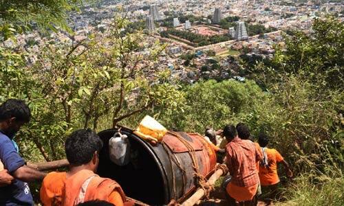 திருவண்ணாமலை: திருவண்ணாமலை, மலை உச்சியிலிருந்து மஹா தீப கொப்பரை கீழே இறக்கி கோவிலுக்கு கொண்டு வரப்பட்டு சிறப்பு பூஜை செய்யப்பட்டது.