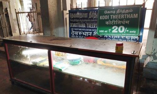 தீர்த்த தலமான ராமேஸ்வரம் கோயிலில் உள்ள 22 தீர்த்தங்களில் 22 வது கோடி தீர்த்தம் அனைத்து தீர்த்தங்களையும் நீராடிய புண்ணியம் கிடைக்கும் என்பது ஐதீகம். இதனால் பல ஆண்டுகளாக கோயில் நிர்வாகம் கோடி தீர்த்தத்தை பாட்டிலில் விற்கின்றனர். ஆனால் கடந்த சில நாட்களாக கோடி தீர்த்தம் பாட்டிலில் அடைக்க, லட்டு, முறுக்கு உள்ளிட்ட பிரசாதங்கள் தயாரிக்க கோயில் நிர்வாகம் கவனம் செலுத்தாததால், விற்பனையும் டல்லாகியது. இதனால் பெரும்பாலான பக்தர்கள் பிரசாதம், கோடி தீர்த்தம் கிடைக்காமல் ஏமாற்றத்துடன் செல்கின்றனர்.