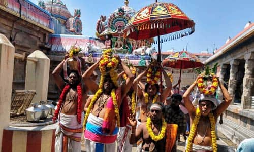 காரைக்கால் திருநள்ளார் தர்பாரண்யேஸ்வரர் கோவிலில் சனிஸ்வரபகவான் தனி சன்னதியில் அருள்பாலித்து வருகிறார். இக்கோவில் ராஜகோபுரம் மற்றும் சொர்ணகணபதி, முருகன், தர்பாரண்யேஸ்வரர், பிரணாம்பிகை மற்றும் சனிபகவான் உள்ளிட்ட சன்னதிகள் புனரமைக்கப்பட்டு கடந்த 2019ம் ஆண்டு கும்பாபிஷேகம் நடந்தது. கும்பாபிஷேகம் நடந்த மாத உத்திராட நட்சத்திர நாளில் சம்வஸ்திரா அபிஷேகம் நடத்தப்படுகிறது. இன்று 4ம் ஆண்டு கும்பாபிஷேகம் நடைபெற்ற நாளை முன்னிட்டு நேற்று மாலை விக்கேஸ்வர பூஜை,கணபதி ஹோமம்,புன்யாவாஜனம், விஷேசகும்பபூஜையும், பூர்ணாஹீதி நடந்தது. யாக பூஜைகள் முடிந்து பூஜைசெய்த இன்று கலசங்கள் கோவில் உட்பிரகாரத்தில் சிவாச்சாரியார்கள் ஊர்வலமாக கொண்டு செல்லப்பட்டது. பின் தர்பாரண்யேஸ்வரர், சொர்ணகணபதி, பிரணாம்பிகை, முருகன்,சனிஸ்வரபகவானுக்கு சிறப்பு அபிஷேகம் மற்றும் மகா தீபாரதனை நடந்தது.இதில் தருமபுரம் ஆதீனம் கட்டளை விசாரணை கந்தசாமி தம்பிரான் சுவாமிகள்,கோவில் நிர்வாக அதிகாரி அருணகிரிநாதன் உள்ளிட்ட பலர் கலந்து கொண்டனர்.