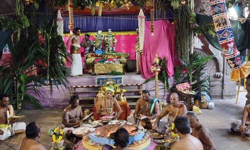 இதனை முன்னிட்டு கோயில் முன் மண்டபத்தில் நேற்று காலை 9:00 மணிக்கு ஆண்டாள், ரங்கமன்னார் எழுந்தருளினர். அங்கு ரகுராம பட்டர் தலைமையில் கோவில் அர்ச்சகர்கள் சிறப்பு ஹோமங்கள் நடத்தி பூஜைகள் செய்தனர். திரளான பக்தர்கள் சாமி தரிசனம் செய்தனர். விழாவில் தக்கார் ரவிச்சந்திரன், செயல் அலுவலர் இளங்கோவன், கோவில் பட்டர்கள் பங்கேற்றனர். இன்று காலை 108 கலச திருமஞ்சனம், நாளை (பிப்ரவரி 10) ஏகதின லட்சார்ச்சனை நடக்கிறது.