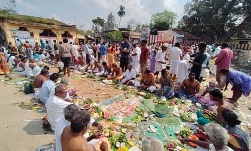 மயிலாடுதுறை: மாசி மகத்தை முன்னிட்டு மயிலாடுதுறையில் உலக புகழ்பெற்ற காவிரி துலாக்கட்டத்தில் ஏராளமனோர் முன்னோர்களுக்கு திதி கொடுத்து வழிபாடு செய்தனர்.