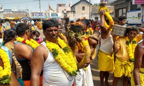 ரத வீதிகள் வழியாக, மேள தாளம் முழங்க, கையில் தீப்பந்தங்களை ஏந்தி ஆடி