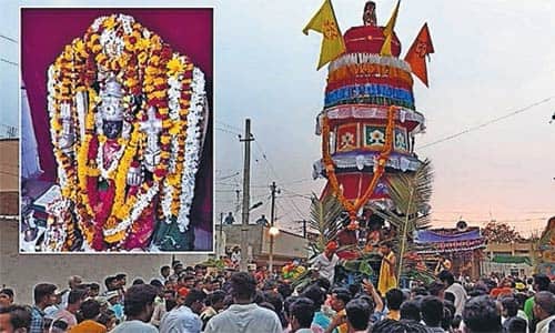 கொப்பால்: கொப்பாலின் குஷ்டகி அருகே உள்ள ஹனுமசாகர் கிராமத்தில் உள்ள பனசங்கரி கோவில் திருவிழா, ஆண்டுதோறும் பிப்ரவரியில், பவுர்ணமியை முன்னிட்டு நடப்பது வழக்கம். அதுபோல, இந்த ஆண்டு திருவிழா, பிப்ரவரி 16 முதல் 18 வரை நடத்த முடிவு செய்யப்பட்டது. கொரோனாவால் எளிய முறையில் நடத்தப்பட்டது. சம்பிரதாய முறைப்படி, தேர் சிறிது துாரம் இழுக்கப்பட்டது. ஏராளமான பக்தர்கள் பங்கேற்றனர்.