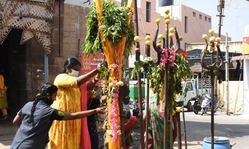பொள்ளாச்சி மாரியம்மன் கோவில் விழா கம்பம் நடப்பட்டது