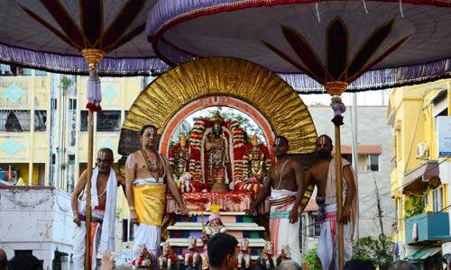 சூரிய பிரபை வாகனத்தில் திருவல்லிக்கேணி பார்த்தசாரதி பெருமாள் வீதி உலா