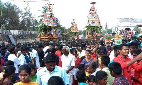 தர்மபுரி மாவட்டம், அரூர் அடுத்த தீர்த்தமலை தீர்த்தகிரீஸ்வரர் கோவில் மாசிமக தேரோட்ட விழா கடந்த, 16ல், விநாயகர் பூஜை, கணபதி ஹோமத்துடன் துவங்கியது. 17ல், கொடியேற்றமும், 21ல், சுவாமி திருக்கல்யாணமும் நடந்தது. விழாவின், முக்கிய நிகழ்வான மாசிமக தேரோட்டம் இன்று, விமர்சையாக நடந்தது. கோவில் முன், அலங்கரிக்கப்பட்டு நிறுத்தி வைக்கப்பட்டிருந்த விநாயகர், தீர்த்தகிரீஸ்வரர், வடிவாம்பிகை ஆகிய, மூன்று தேர்கள் மீது, முத்துக்கொட்டை, பொறி, மிளகு, உப்பு மற்றும் நவதானியங்களை துாவி, பக்தர்கள் தங்களது நேர்த்தி கடனை செலுத்தி வழிபட்டனர். பின், மதியம், 2:15 மணிக்கு, பக்தர்கள் முதலாவதாக அலங்கரிக்கப்பட்ட விநாயகர் தேரை வடம் பிடித்தனர். தொடர்ந்து, விநாயகர் தேர் நிலையை அடைந்ததும், தீர்த்தகிரீஸ்வரர் தேர் புறப்பாடு நடந்தது. அதற்கடுத்து, வடிவாம்பிகை தேரை பக்தர்கள் வடம் பிடித்தனர். விழாவில், சேலம், கிருஷ்ணகிரி, திருவண்ணாமலை, வேலுார் உள்ளிட்ட மாவட்டங்களில் இருந்து, 30 ஆயிரத்திற்கும் மேற்பட்ட பக்தர்கள் பங்கேற்றனர். பக்தர்களுக்கு அன்னதானம் மற்றும் நீர்மோர் வழங்கப்பட்டது. விழாவை முன்னிட்டு, தமிழ்நாடு அரசு போக்குவரத்து கழக அரூர் கிளை சார்பில், சிறப்பு பஸ்கள் இயக்கப்பட்டது. டி.எஸ்.பி., பெனாசிர் பாத்திமா தலைமையில், போலீசார் பாதுகாப்பு பணியில் ஈடுபட்டனர்.