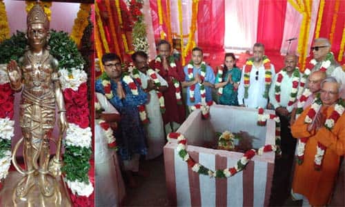 ராமேஸ்வரம்: ராமேஸ்வரத்தில் தனியார் அறக்கட்டளை சார்பில் ரூ.100 கோடியில் 108 அடி உயரத்தில் அனுமன் சிலை அமைக்க அடிக்கல் நாட்டப்பட்டது.