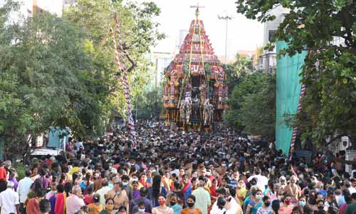 சென்னை, : திருவல்லிக்கேணி பார்த்தசாரதி பெருமாள் கோவில் பிரம்மோற்சவத்தின் பிரதான நாளான இன்று, காலை 7:00 மணிக்கு தேரோட்டம் நடைபெற்றது.