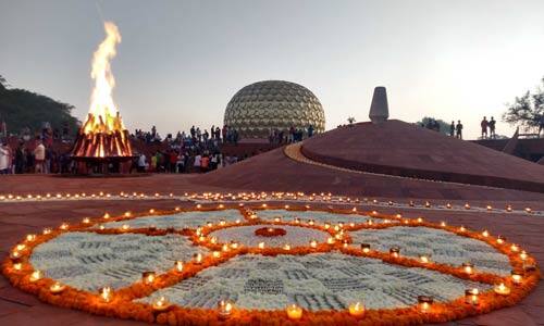 புதுச்சேரி அருகே அமைந்துள்ள விழுப்புரம் மாவட்டம் ஆரோவில் சர்வதேச நகரத்தை உருவாக்க அன்னை மிரா அல்பாசா தலைமையில் 1968 ஆம் ஆண்டு பிப்ரவரி 28ல் கட்டுமான பணிகள் துவங்கியது. அதனை யொட்டி ஒவ்வொரு ஆண்டும் ஆரோவில் பிறந்த தினம் கொண்டாடப்படுகிறது. ஆரோவில் நகரம் உருவான 54 ஆம் ஆண்டு விழாவையொட்டி, அதிகாலை 5:15 மணியளவில் ஆரோவில் மாத்ரி மந்திர் எதிரில் உள்ள ஆம்பி தியேட்டரில் போன் பையருடன் கூட்டு தியான (தீ மூட்டப்பட்டு சுற்றி அமர்ந்து தியானத்தில் ஈடுபடுவது) நிகழ்ச்சி ஒரு மணி நேரம் நடந்தது. இதில் வெளிநாடு- உள்நாடு சுற்றுலா பயணிகள் ஏராளமானோர் கலந்துகொண்டு கூட்டுத் தியானத்தில் ஈடுபட்டனர்.