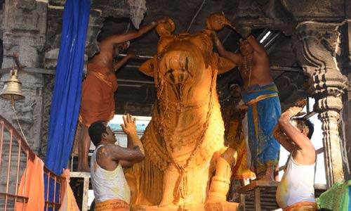 திருவண்ணாமலை : திருவண்ணாமலை அருணாச்சலேஸ்வரர் கோவிலில் மாசி மாத பிரதோஷத்தை முன்னிட்டு ராஜகோபுரம் அருகே உள்ள பெரிய நந்தி பெருமானுக்கு சிறப்பு பால் அபிஷேகம் நடந்தது. நடந்த சிறப்பு பூஜையில் ஏராளமான பக்தர்கள் சுவாமி தரிசனம் செய்தனர்.