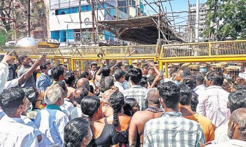 கடலுார் மாவட்டம், சிதம்பரம் நடராஜர் கோவிலில், பெண் பக்தரை தாக்கிய தீட்சிதரை கைது செய்யவும், சிற்றம்பல மேடையில் ஏறி தரிசனம் செய்ய அனுமதிக்க கோரியும், அரசியல் கட்சியினர் மற்றும் பல்வேறு அமைப்புகள் வலியுறுத்தி வருகின்றன.இந்நிலையில், நடராஜர் கோவில் சிற்றம்பலத்தில், தொடர்ந்து ஆறு நாட்கள் தேவாரம் பாடி வழிபடப் போவதாக, தெய்வத் தமிழ் பேரவை அறிவித்தது. நேற்று காலை செயலர் வெங்கட்ராமன், ஒருங்கிணைப்பாளர் மணியரசன், தேனி மாவட்டம் ராஜயோக சித்தர் பீடம் வடகுரு மடாதிபதி குச்சனுார் கிழார் தலைமையில் 17 பெண்கள் உட்பட, 76 பேர் சிதம்பரம் கீழ வீதிக்கு வந்தனர். கடலுார் ஏ.டி.எஸ்.பி., அசோக்குமார், டி.எஸ்.பி.,க்கள் ரமேஷ்ராஜ், ஆரோக்கியராஜ் தலைமையில் 100க்கும் மேற்பட்ட போலீசார், கீழ வீதி வாயிலில் இரும்பு தடுப்பால் தடுத்தனர்.இதையடுத்து, சாலையில் அமர்ந்து தேவாரம், திருவாசகம் பாடினர். ஒரு மணி நேரத்திற்கு பின் 76 பேரை போலீசார் கைது செய்தனர். வேனில் ஏற மறுத்த சிலரை போலீசார் குண்டுக்கட்டாக துாக்கிச் சென்று கைது செய்தனர். இதனால் தள்ளுமுள்ளு ஏற்பட்டு, அங்கு பரபரப்பு நிலவியது.