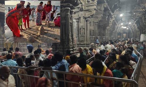 ராமேஸ்வரம்: ராமேஸ்வரத்தில் மகா சிவராத்திரி விழா சிறப்பாக நடைபெற்று வருகிறது. அக்னி தீர்த்த கடற்கரையில் பக்தர்கள் மணலில் சிவலிங்கம் வடிவமைத்து பூஜை செய்தனர். சிவராத்திரி விழாவிற்கு ஏராளமான பக்தர்கள் கோயிலில் குவிந்து வருகின்றனர்.