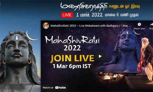 சென்னை: சிவராத்திரியை முன்னிட்டு இன்று மாலை 6 மணி முதல் ஈஷா யோகா மையத்தில் நடக்கும் தியானம், அருளூரை, சிறப்பு பூஜைகள் , இசை நிகழ்ச்சி என பல்வேறு நிகழ்ச்சிகள் ஏற்பாடு செய்யப்பட்டுள்ளது. விடிய, விடிய நடைபெறும் இந்த வைபவத்தை இன்று ( 1 ம்தேதி ) மாலை 6 மணி முதல் நாளை ( 2ம் தேதி) காலை 6.00 வரை நேரடியாக தினமலர் இணையதளம் சிறப்பு ஒளிபரப்பு செய்கிறது. https://www.dinamalar.com/mahashivarathri/ என்ற லிங்கை கிளிக் செய்து காணலாம்.
