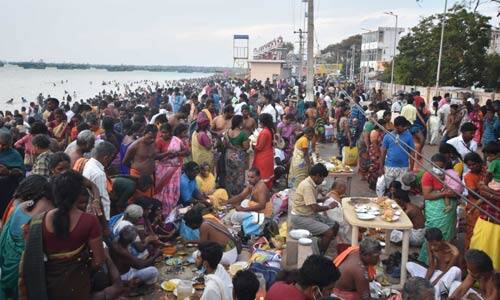 மாசி அமாவாசை : ராமேஸ்வரம் அக்னி கடலில் குவிந்த பக்தர்கள்