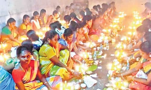 காமாட்சியம்மன் கோயிலில் உலக நன்மைக்காக திருவிளக்கு பூஜை