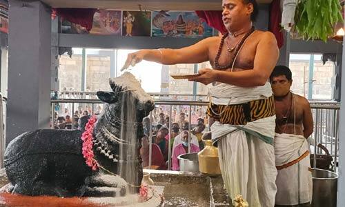 சித்தூர் : பள்ளிக்கொன்டேஸ்வர சுவாமி கோயிலில் பிரதோஷ பூஜைகள் வெகுவிமரிசையாக நடத்தப் பட்டது. சர்வ மங்கள சமேத ஸ்ரீ பள்ளிக்கொன்டேஸ்வர சுவாமி தேவஸ்தானத்தில் வீற்றிருக்கும் சுயம்புவான வால்மீகேஸ்வர சுவாமிக்கும் நந்தீஸ்வரருக்கும் ஒரே சமயத்தில் பல்வேறு சுகந்த திரவியங்களாலும் பஞ்சாமிர்தத்தாலும் சிறப்பு அபிஷேக ஆராதனைகள் பிரதோஷ காலத்தில் நடைபெற்றது.இதனைத் தொடர்ந்து உற்சவ மூர்த்திகள் கோயிலில் வலம் வந்து பக்தர்களுக்கு அருள் பாலித்தனர்.இதில் கோயில் அறங்காவலர் குழு தலைவர் முனி சேகர் ரெட்டி மற்றும் உறுப்பினர்கள் கோயில் அதிகாரிகள் ஊழியர்கள் கலந்து கொண்டு சாமி தரிசனம் செய்தனர்.