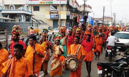 வெள்ளகோவில்: வெள்ளகோவில் கடைவீதி பகுதிகளில் பங்குனி உத்திரத்தை முன்னிட்டு பக்தர்கள் பழனி முருகனுக்கு காவடி எடுத்தும், பாதயாத்திரையாக, ரேக்ளா வண்டிகள் மூலம் வரிசை கட்டி செல்கின்றனர்.
