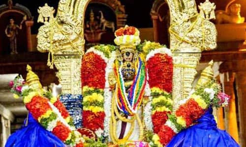 ஸ்ரீரங்கம்: ஸ்ரீரங்கம் அரங்கநாதசுவாமி கோயிலில் நடைபெற்று வரும் ஆதி பிரம்மோத்ஸம் பங்குனி திருவிழாவின் ஏழாம் திருநாளான நேற்று (16ம் தேதி) மாலை ஸ்ரீநம்பெருமாள் உபயநாச்சியார்களுடன் பல்லக்கில் எழுந்தருளி கொட்டாரத்தில் மாலை நெல் அளவை கண்டருளினார். பின்னர் ஸ்ரீநம்பெருமாள் உபயநாச்சியார்களுடன் பூந்தேரில் எழுந்தருளி சித்திரை வீதிகளில் வலம் வந்தார். ஏராளமான பக்தர்கள் தரிசனம் செய்தனர்.