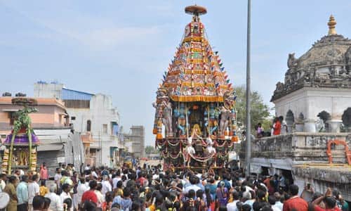 வேலுார்: விரிஞ்சிபுரம் மார்க்கபந்தீஸ்வரர் கோவில் தேர்த்திருவிழாவில் ஏராளமான பக்தர்கள் வடம் பிடித்து இழுத்தனர். வேலுார் மாவட்டம், விரிஞ்சிபுரத்தில் உள்ள மார்க்கபந்தீஸ்வரர் கோவிலில், முத்தரையர் சமூதாயத்தினர் சார்பில், 89 ம் ஆண்டு, 10 நாள் பிரம்மோற்சவ விழா கடந்த 8 ம் தேதி தொடங்கியது. இதையொட்டி 8 ம் நாள் தேர்த்திருவிழா நடந்தது. கோவில் தக்கார் விஜயா தலைமை வகித்தார். தமிழ்நாடு முத்தரையர் சங்க தலைவர் ராஜமாணிக்கம் தொடங்கி வைத்தார். விழாவில், செயல் அலுவலர் சாமிதுரை, கோவில் அறங்காவலர் சசிகுமார், ஆய்வாளர் சுரேஷ், ஊராட்சி மன்ற தலைவர் குணசுந்தரி, தேர் உற்சவ கமிட்டி நிர்வாகிகள் வெங்கடேசன் மற்றும் வேலுார், திருவண்ணாமலை மாவட்ட முத்தரையர் சமூதாயத்தினர் பங்கேற்றனர். வரும் 18 ம் தேதி மாலை 4:00 மணிக்கு மார்க்கபந்தீஸ்வரருக்கு சிறப்பு அபிேஷகம், இரவு 9:00 மணிக்கு இராவணேஸ்வரர் வாகனத்தில் பஞ்சமூர்த்திகள் திருவீதியுலா நடக்கிறது.
