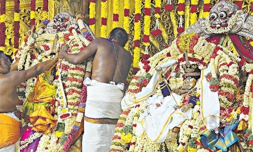 மயிலாப்பூர் கபாலீஸ்வரர் கோவிலில் பங்குனி மாதப் பெருவிழா, கடந்த 9ம் தேதி கொடியேற்றத்துடன் துவங்கியது. விழாவின் 10ம் நாளான நேற்று, திருக்கல்யாண வைபவம் நடந்தது. நேற்று காலை , திருக்கூத்த பெருமான் திருக்காட்சி, ஐந்திருமேனிகள் விழா நடந்தது தொடர்ந்து, தீர்த்தவாரி நடந்தன. மாலை 6:00 மணிக்கு, புன்னை மரத்தடியில் உமாதேவியார் மயிலுருவுடன், மாதேவரை வழிபடல் நிகழ்ச்சி நடந்தது. இதையடுத்து, உற்சவர் கபாலீஸ்வரர் – கற்பகாம்பாள் திருமணவை பவம், நேற்று மாலை துவங்கியது. இருவரும் சிறப்பு அலங்காரத்துடன் காட்சிஅளித்தனர். பின், சனீஸ்வரர் சன்னதி அருகில் அமைக்கப்பட்டிருந்த மேடையில், தம்பதி சமேதராக கபாலீஸ்வரர் எழுந்தருளினார். திருமணசம்பிரதாய சடங்குகள் முடித்த பின், கபாலீஸ்வரர் கற்பகாம்பாளை மணம் புரிந்து, பக்தர்களுக்கு மணக்கோலத்தில் அருள்பாலித்தார். இவ்விழாவில், ஏராளமான பக்தர்கள் பங்கேற்றனர். இதையடுத்து, கைலாய ஊர்த்தி நிகழ்ச்சி நடந்தது. அதைத் தொடர்ந்து, கொடி இறக்கத்துடன் பங்குனி விழா நிறைவடைந்தது. இன்று பந்தம் பறி விழாவும், நாளை விடையாற்றி விழாவும் நடக்கிறது.