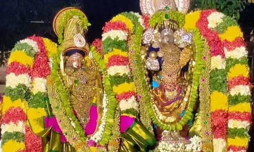 தொடர்ந்து முத்துகொண்டை வைத்த வெற்றி வேல் மாலை சாற்றிய அலங்காரத்தில் சுவாமியும், தாயாரும் அருள்பாலித்தனர். தினசரி திருமாமகள் தாயார் சிறப்பு அலங்காரத்தில் பக்தர்களுக்கு அருள்பாலித்தார். நேற்று காலை 10:00 மணிக்கு பெருமாள் தாயார் சன்னதியில் எழுந்தருளினார். மாலை 4:00 மணிக்கு உற்ஸவ பெருமாள் மூலவர் மற்றும் உற்ஸவ தாயாருக்கும் நவகலச அலங்காரத் திருமஞ்சனம் நடந்தது. பின்னர் தங்கப்பல்லக்கில் பு றப்பாடாகி சிமம மண்டபத்தில் எழுந்தருளினர்.பின்னர் தாயாரும்,பெருமாளும் பச்சை ஓலையில் ஊஞ்சல் விசேஷம் நடந்தது. தொடர்ந்து விசசே சாத்துமுறை, விநியோகம் கோஷ்டி நடந்து உற்ஸவம் நிறைவடைந்தது.