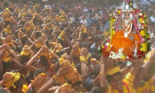 இக்கோயிலில் மார்ச் 11 அன்று கொடியேற்றத்துடன் பங்குனி விழா துவங்கியது. மார்ச் 19 இரவு 8:00 மணிக்கு மின் தீப அலங்காரத் தேரில் அம்மன் வலம் வந்தார். தொடர்ந்து இன்று காலை 4:00 மணி தொடங்கி பரமக்குடி வைகை ஆற்றில் இருந்து ஆயிரக்கணக்கான பக்தர்கள் பால்குடம் எடுக்கும் நிகழ்ச்சி நடந்தது. அப்போது குழந்தைகள், பெண்கள், ஆண்கள் என நகரின் முக்கிய வீதிகளில் வலம் வந்து கோயிலில் பால் குடங்களை சேர்த்தனர். இதன்படி தொடர்ந்து 6 மணி நேரம் நடந்த ஊர்வலம், காலை 10;00 மணிக்கு நிறைவடைந்தது. 5 அடி முதல் 15 அடி வரை வேல் குத்தி பக்தர்கள் நேர்த்திக் கடனை செலுத்தினர். பின்னர் காலை 11:00 மணி தொடங்கி, 1:00 மணி வரை சந்தனம், பன்னீர், பஞ்சாமிர்தம், இளநீர் உட்பட குடம், குடமாக மூலவர் மற்றும் உற்சவருக்கு பால் அபிஷேகம் நடத்தப்பட்டது. தொடர்ந்து அம்மனுக்கு சிறப்பு அலங்காரம் செய்யப்பட்டு தீபாராதனை காண்பிக்கப்பட்டது.