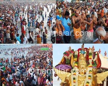 ராமேஸ்வரம்: ஆடி அமாவாசையை முன்னிட்டு ராமேஸ்வரம் அக்னிதீர்த்த கடலில் ஏராளமான பக்தர்கள் புனித நீராடி சுவாமி தரிசனம் செய்தனர். அதிகாலை ராமேஸ்வரம் ராமநாதசுவாமி கோயில் நடை திறக்கப்பட்டு ஸ்படிகலிங்க பூஜை, சுவாமி அம்பாளுக்கு காலபூஜைகள் நடந்தது. ஸ்ரீராமர், சீதாதேவி, லெட்சுமணருடன் தங்க கருட வாகனத்தில் அக்னிதீர்த்த கடற்கரைக்கு எழுந்தருளி, பக்தர்களுக்கு தீர்த்தவாரி வழங்கி அருள்பாலித்தார். அதிகாலை முதல் அக்னிதீர்த்த கடலில் ஏராளமான பக்தர்கள் புனித நீராடி தர்ப்பணம் செய்து முன்னோர்களை வழிபட்டனர்.