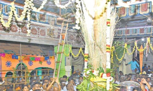 தாயமங்கலம்: இளையான்குடி அருகே தாயமங்கலத்தில் உள்ள பிரசித்தி பெற்ற முத்துமாரியம்மன் கோயில் பங்குனி பொங்கல் விழா கொடியேற்ற விழாவில் ஏராளமான பக்தர்கள் கலந்து கொண்டனர்.