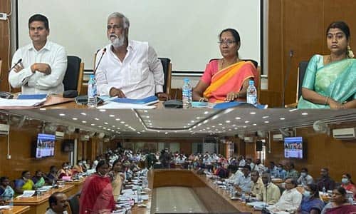 சென்னை : சென்னை நுங்கம்பாக்கம் இந்து சமய அறநிலையத்துறை ஆணையர் அலுவலகத்தில் இந்து சமய அறநிலையத்துறை அமைச்சர் திரு.பி.கே.சேகர்பாபு, தலைமையில் சென்னை மண்டல ஆணையாளர்களுடன் சீராய்வு கூட்டம் நடைபெற்றது.