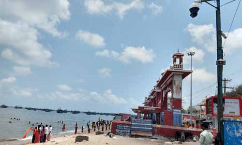ராமேஸ்வரம்: ராமேஸ்வரம் கோயில் அக்னி தீர்த்த கடற்கரையில் சி.சி.டி.வி., கேமராக்கள் பழுதாகி முடங்கி கிடப்பதால், பணத்தை பறி கொடுக்கும் பக்தர்கள் பரிதவிக்கின்றனர்.