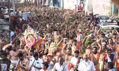 தஞ்சாவூர்: தஞ்சையை அடுத்த புன்னைநல்லூர் மாரியம்மனுக்கு, 1008 பால்குடம் ஊர்வலமாக கொண்டு செல்லப்பட்டது.