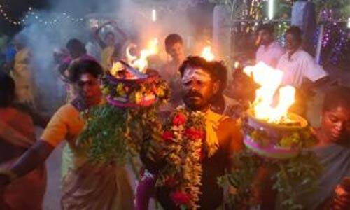 மானாமதுரை அருகே எஸ் கரிசல் குளத்தில் உள்ள கேட்ட வரம் தரும் முத்துமாரியம்மன் கோயில் பங்குனி பொங்கல் விழா கடந்த வாரம் கொடியேற்றத்துடன் துவங்கியது விழா நாட்களின் போது தினந்தோறும் அம்மனுக்கு சிறப்பு அபிஷேக ஆராதனைகள் செய்யப்பட்டு சுவாமி வீதிஉலா நடைபெற்றது விழாவின் முக்கிய நிகழ்ச்சியான பொங்கல் விழாவான நேற்று இரவு அம்மனுக்கு சிறப்பு அலங்காரம் செய்யப்பட்டிருந்தது இதனை தொடர்ந்து ஏராளமான பக்தர்கள் ஆற்றில் இருந்து தீச்சட்டி எடுத்து வந்து கோயிலை வலம் வந்து நேர்த்திக் கடன்களை செலுத்தினர் இதனை தொடர்ந்து கோயிலில் அன்னதானமும் நடைபெற்றது விழாவிற்கான ஏற்பாடுகளை டிரஸ்டி லட்சுமணன் பாண்டி செய்திருந்தனர்.