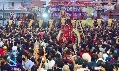 கேரள மாநிலம் பாலக்காடு புத்தூர் திருபுராய்க்கல் பகவதி அம்மன் கோவில் கூத்தபிஷேக-தாலப்பொலி உற்சவம் சிறப்பாக நடைபெற்றது. உற்சவத்தையொட்டி நேற்று யானைகளின் அணிவகுப்பு சிறப்பாக நடைபெற்றது. ஏராளமானோர் கலந்து கொண்டனர்.