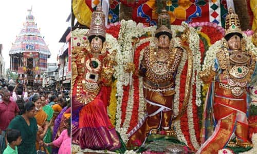 தஞ்சாவூர் மாவட்டம் கும்பகோணத்தில் "தென்னக அயோத்தி" என்று போற்றப்படும் ராமசாமி திருக்கோவிலில் ராம நவமி திருவிழா கடந்த 2ம் தேதி கொடியேற்றத்துடன் தொடங்கியது. தினமும் காலை மற்றும் மாலையில் சுவாமி வீதி உலா நிகழ்ச்சி நடைபெற்றது. இரண்டாம் நாள் 3ம் தேதி வெள்ளி சூரிய பிரபையில் வீதி உலாவும், நான்காம் நாள் தங்க சேஷவாகனம், ஐந்தாம் நாள் சிறப்பு ஓலைசப்பரத்தில் வந்து சுவாமி அருள்பாலித்தார். தொடர்ந்து, ஆறாவது நாள் வெள்ளி ஹனுமன் வாகனம், ஏழாம் நாள் யானை வாகனம், எட்டாம் நாள் புன்னைமர வாகனம், ஒன்பதாம் நாள் வெள்ளிக் குதிரை வாகனத்தில் சுவாமி வீதி உலா நடைபெற்றது. இத்திருவிழாவின் முக்கிய நிகழ்ச்சியான திருத்தேரோட்டம் இன்று நடைபெற்றது. இதில் ராமர் மற்றும் சீதை தேரில் எழுந்தருளி சிறப்பு அலங்காரத்தில் பக்தர்களுக்கு காட்சி அளித்தனர். தேரோட்டத்தில் ஆயிரக்கணக்கான பக்தர்கள் கலந்துகொண்டு சுவாமி தரிசனம் செய்தனர். இதையடுத்து நாளை 11ம் தேதி திருமஞ்சனத்துடன் விடையாற்றி விழா நடைபெறுகிறது.