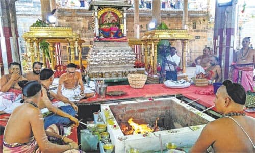 சிதம்பரம்: சிதம்பரம் நடராஜர் கோவிலில் மகா அபிஷேகம் நடந்தது. கடலுார் மாவட்டம் சிதம்பரம் நடராஜர் கோவில், சித்சபையில் உள்ள மூலவர் சிவகாம சுந்தரி சமேத நடராஜர் சுவாமிக்கு, ஆண்டிற்கு 6 முறை மகா அபிஷேகம் நடக்கிறது. ஆனி திருமஞ்சனம், ஆருத்ரா தரிசன காலத்தில் ஆயிரங்கால் மண்டபத்திலும், மற்ற காலங்களில் நடராஜர் வீற்றிருக்கும் சித்சபை முன்பு உள்ள கனகசபையில் மகா அபிஷேகம் நடக்கும். சித்திரை மாத திருவோண நட்சத்திர மகாஅபிஷேகம் நேற்று முன்தினம் நடந்தது. முன்னதாக காலை 10:00 மணிக்கு, சிவகாம சுந்தரி சமேத நடராஜர் சுவாமி கனகசபையில் எழுந்தருளினர். நடராஜ சுவாமிக்கு லட் சார்ச்சனை , கட ஸ்தாபனம், மகா ருத்ர ஜபம், மகா தீபாராதனை நடந்தது. பின், கிழக்கு கோபுரம் அருகே சிறப்பு மகா ருத்ரயாகம் நடந்தது. மாலை துவங்கி நள்ளிரவு வரை மகா அபிஷேகம் நடந்தது. ஏராளமான பக்தர்கள் தரிசனம் செய்தனர். ஏற்பாடுகளை நடராஜர் கோவில் பொது தீட்சிதர்கள் செய்திருந்தனர்.