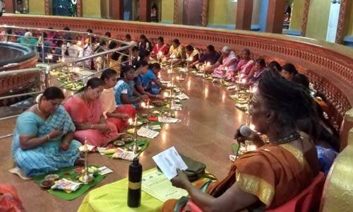 கோவை காமாட்சிபுரி ஆதீனம் சிவலிங்கேஸ்வர சுவாமிகள் திருவிளக்கு பூஜையை துவக்கி வைத்து பேசியதாவது: உடல் முழுவதும் ரத்தம் எவ்வாறு பரவி இருக்கிறதோ, அதுபோன்று, உலகம் முழுவதும் பரவி இருப்பவள் ஆதிபராசக்தி. அரிசிகள் ஒன்று சேர்ந்து சாதம் ஆவது போல், அனுக்கள் ஒன்று சேர்ந்த ஆதியாக உள்ளாள் பராசக்தி. கோவிலுக்கு நீங்கள் சென்றால்தான் கடவுளின் அனுக்கிரகம் கிடைக்கும். ஆனால், இன்று பல பெண்கள் கோவிலுக்கே செல்வது கிடையாது. இந்துக்களை தவிர்த்து, மற்ற மதத்தினர் கோவிலுக்கு செல்வதை தவறாமல் கடைபிடிக்கின்றனர். தமிழகத்தில் கோவில்களுக்கு பஞ்சமே இல்லை. கோவிலுக்கு செல்பவர்களின் எண்ணிக்கைதான் குறைவாக உள்ளது. வெள்ளிக்கிழமை தோறும் விளக்கு ஏற்றி வைத்து, இதுபோன்று திருவிளக்கு வழிபாடு செய்யுங்கள். அஷ்ட லட்சுமியும் உங்கள் இல்லம் தேடி வருவர். கோவிலுக்கு வருவது பேசுவதற்கு அல்ல. மந்திரங்களை உச்சரித்து, அதன் மூலம் இறைவன் அருள் பெறுவதால், புண்ணியம் கிடைக்கும் என்றார். ஆண்டு விழாவை முன்னிட்டு, 108 திருவிளக்கு பூஜை, 108 சங்காபிஷேகம், மற்றும் மழை வேண்டி வருண மஹா மந்திர வேள்வி, நவக்கிரக வேள்வி உள்ளிட்டவை நடந்தன. 108 திருவிளக்கு பூஜையில், பெண்கள், சிறுமியர் உள்ளிட்டோர் பங்கேற்றனர். சிறப்பு அலங்காரத்தில், அம்மையப்பராக சிவபெருமான் பக்தர்களுக்கு அருள்பாலித்தார்.