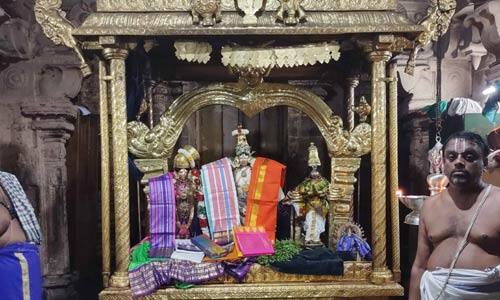 ஸ்ரீவில்லிபுத்தூர்: ஸ்ரீரங்கத்தில் ஏப்.29ம் தேதி நடக்கும் சித்திரை தேர்திருவிழாவில் ரங்கநாதருக்கு சாற்றுவதற்காக ஸ்ரீவில்லிபுத்தூர் ஆண்டாள், ரெங்கமன்னாருக்கு சாற்றபட்ட வஸ்திரம், கிளி, மங்கலப் பொருள்கள் கொண்டு செல்லப்பட்டது. ஆண்டுதோறும் ஸ்ரீரங்கத்தில் நடக்கும் சித்திரைத் தேரோட்டத்தின்போது ரெங்கநாதருக்கு சாற்றுவதற்காக வஸ்திரங்கள், கிளி, மங்கலப்பொருட்கள் ஸ்ரீவில்லிபுத்தூர் ஆண்டாள் கோயிலில் இருந்து கொண்டு செல்லப்படுவது வழக்கம். இதனை முன்னிட்டு இன்று காலை 11:00 மணிக்கு ஆண்டாள், ரங்கமன்னாருக்கு வஸ்திரம், கிளி, மங்கலப்பொருட்கள் சமர்ப்பிக்கப்பட்டு சிறப்பு பூஜைகள் நடந்தது. பின்னர் அப்பொருட்கள் ஒரு கூடையில் வைக்கப்பட்டு ஸ்தானிகம் ரமேஷ் பிரசன்னா தலைமையில் கோயில் பிரகாரம், மாடவீதி சுற்றி வந்து ஸ்ரீரங்கம் கோயிலுக்கு கொண்டு செல்லப்பட்டது. விழாவில் தக்கார் ரவிச்சந்திரன், செயல் அலுவலர் முத்துராஜா மற்றும் கோயில் பட்டர்கள் பங்கேற்றனர்.