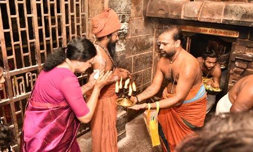 மயிலாடுதுறை : திருக்கடையூர் அமிர்தகடேஸ்வரர் கோவிலில் சசிகலா சிறப்பு பூஜைகள் செய்து வழிபாடு நடத்தினர்.