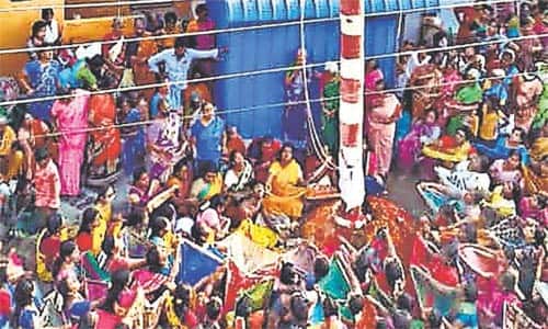 சின்ன காஞ்சிபுரம், கோகுலம் தெருவில் அமைந்துள்ள திரவுபதி அம்மன் கோவில் வசந்த திருவிழா, இம்மாதம் 6ம் தேதி கொடியேற்றத்துடன் துவங்கியது.தினமும் மாலையில் மகாபாரத சொற்பொழிவு நடக்கிறது. வில் வளைப்பு, சுபத்திரை திருமணம், ராஜசூய யாகம், திரவுபதி துகில், அர்ச்சுனன் தபசு, குறவஞ்சி, கிருஷ்ணன் துாது, அரவான் களப்பலி, கர்ணன் மோட்சம், பதினெட்டாம் போர், துரியோதனன் படுகளம் போன்ற கட்டை கூத்து நாடகம் நடக்கிறது. அர்ச்சுனன் தபசு நிகழ்ச்சியில், பனை மரத்தில் ஏறி, அர்ச்சுனன் தவம் செய்யும் நிகழ்ச்சி நடந்தது.திருமணம் ஆகாத பெண்கள், விரைவில் திருமணம் ஆவதற்கும், திருமணம் ஆன பெண்களுக்கு புத்திர பாக்கியம் கிடைக்க வேண்டும் என வேண்டியும், மரத்தில் இருந்து அர்ச்சுனன் வீசிய எலுமிச்சை பழத்தை சேலை முந்தானையால் பிடித்தனர். வசந்த விழா வரும், 4ம் தேதியுடன் நிறைவு பெறுகிறது. அன்று காலையில் துரியோதனன் படுகளம் நிகழ்ச்சி, மாலையில் தீ மிதி விழா நடக்கிறது.