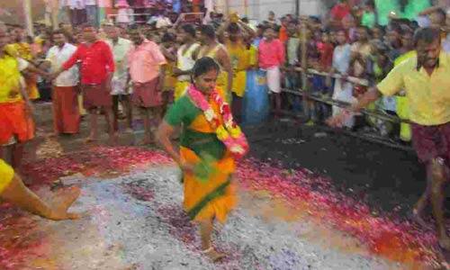 சேலம், மணியனுார் காளியம்மன் கோவில் சித்திரை பண்டிகையில், ஏராளமான பக்தர்கள் அக்னி குண்டம் இறங்கி நேர்த்திக்கடன் செலுத்தினார்.