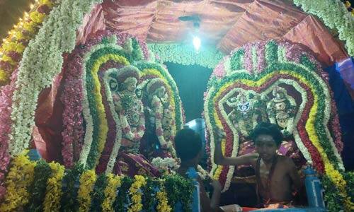 காரைக்கால் மாவட்ட திருநள்ளாரில் தர்பாரண்யேஸ்வரர் கோவிலில் சனீஸ்வர பகவான் தனி சன்னதியில் அருள் பாலித்து வருகிறார். இக்கோவிலில் துர்முக வருஷ பிரமோற்சவ விழா கொடியேற்றம் கடந்த 20ம் தேதி விக்னேஸ்வர பூஜை, மகாகணபதி ஹோமத்துடன் துவக்கியது.பின் பஞ்சமூர்த்தி வீதி உலா நடந்தது. கடந்த 27ம் தேதி முதல் 29ம் தேதி வரை விநாயகர் உற்சவமும், கடந்த 30ம் தேதி முதல் 2ம் தேதி வரை சுப்ரமணிய சுவாமி உற்சவமும்,நேற்று முன்தினம் இரவு அடியார்கள் நால்வர் புஷ்ப பல்லக்கு நடைபெற்றது. நேற்று செண்பகதியாகராஜர் வசந்த மண்டபம் எழுந்தருதளும்,வரும் 7ம் தேதி பஞ்சமூர்த்திகள் தங்க ரிஷப வாகனத்தில் சுவாமி வீதி உலாவும்.9ம் தேதி தேர் திருவிழாவும் நடக்கிறது.10ம் தேதி சனிஸ்வர பகவான் தங்க காக்கை வாகனத்தில் சுவாமி விதி உலா நடக்கிறது.11ம்தேதி தெப்போற்சவம்,12ம் தேதி பஞ்சமுர்த்திகள் திருவீதியுலா விசாக தீர்த்தம் நடைபெறுகிறது.விழா ஏற்பாடுகளை கோவில் நிர்வாக அதிகாரி அருணகிரிநாதன்.கட்டளை விசாரணை கந்தசாமி தம்பிரான் சுவாமிகள் ஆகியோர் முன்னிலை சிறப்பாக நடைபெற்றது.